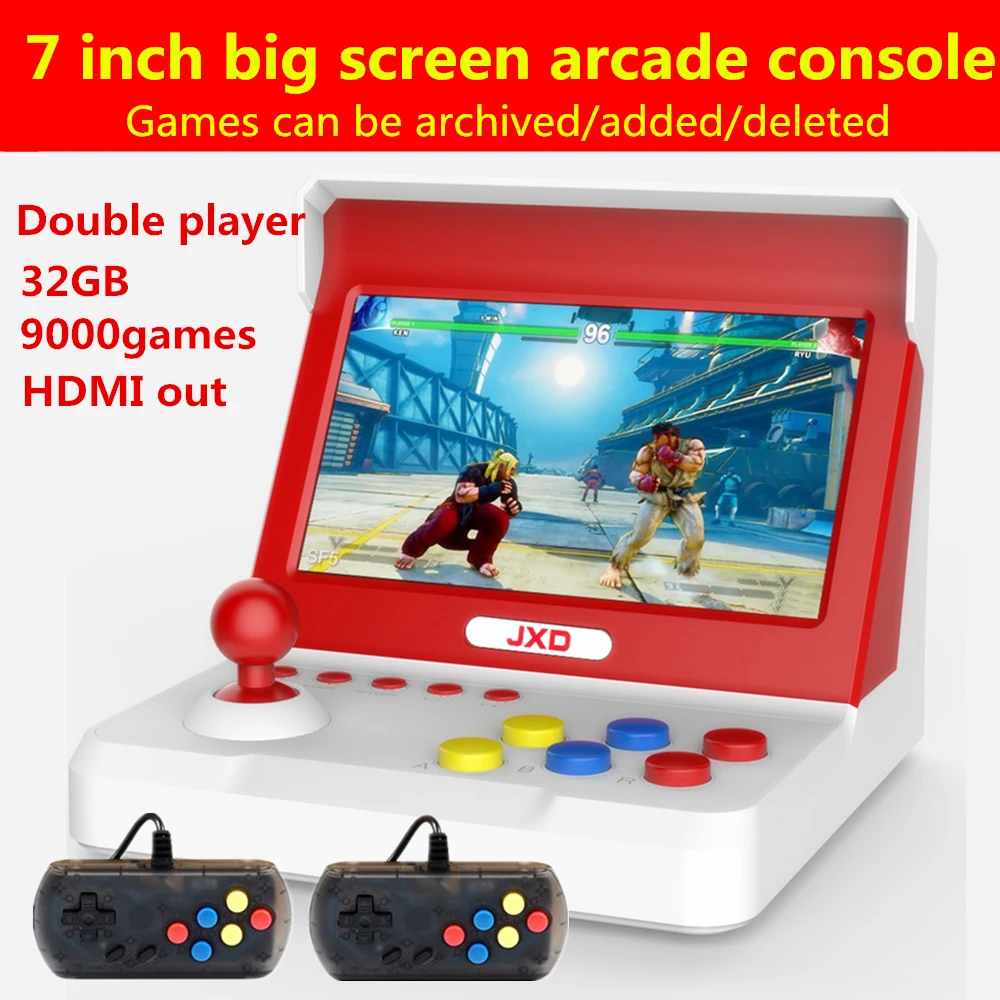 Hot Sale JXD 7.0 inch big screen retro mini arcade console 32GB Built-in 9000 game for cp1/cp2/neogeo/gba/gb
