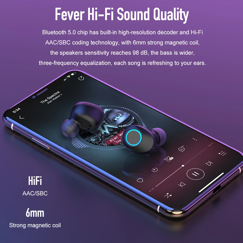 Rockspace Wireless Bluetooth Headset LED Display Touch Control TWS Bluetooth Earphone V5.0 Stereo M