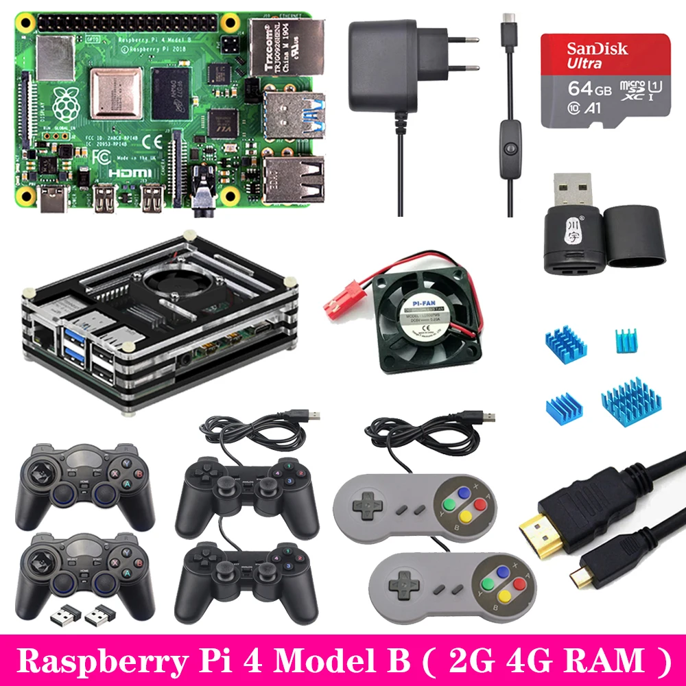 Raspberry Pi 4 2GB 4GB RAM Game kit with USB Gamepad Joystick Acrylic Case SD Card Power Supply for